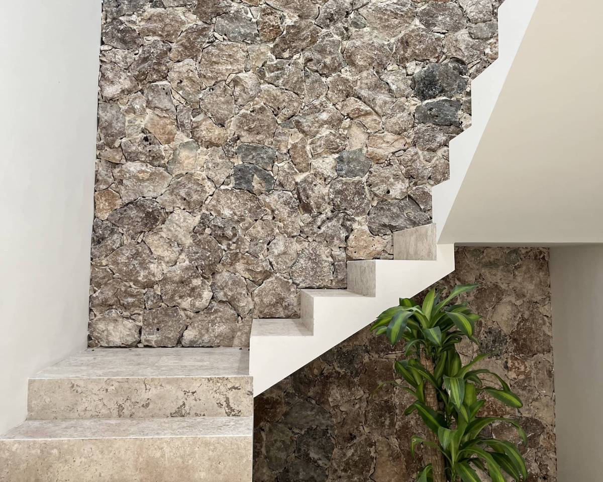 - Piso interior Marmol Traventino Fiorito 30xLL acabado pulido.