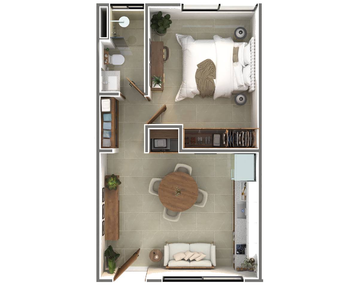 Está formado por 2 torres de 4 niveles con un total de 42 departamentos de 1 y 2 recámaras, pensados para adaptarse a tu estilo de vida.