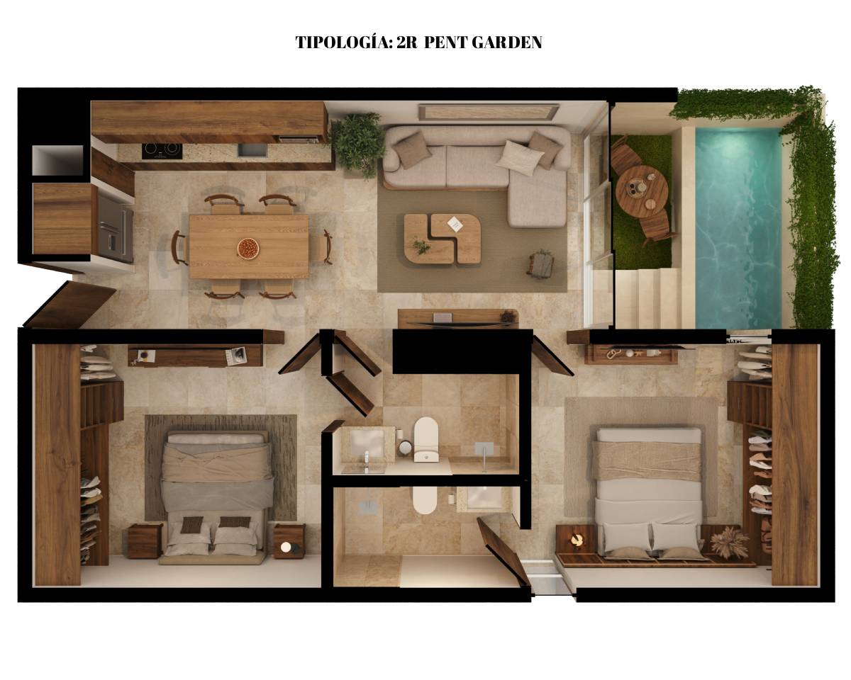 Tipología 2 Recámaras + Garden